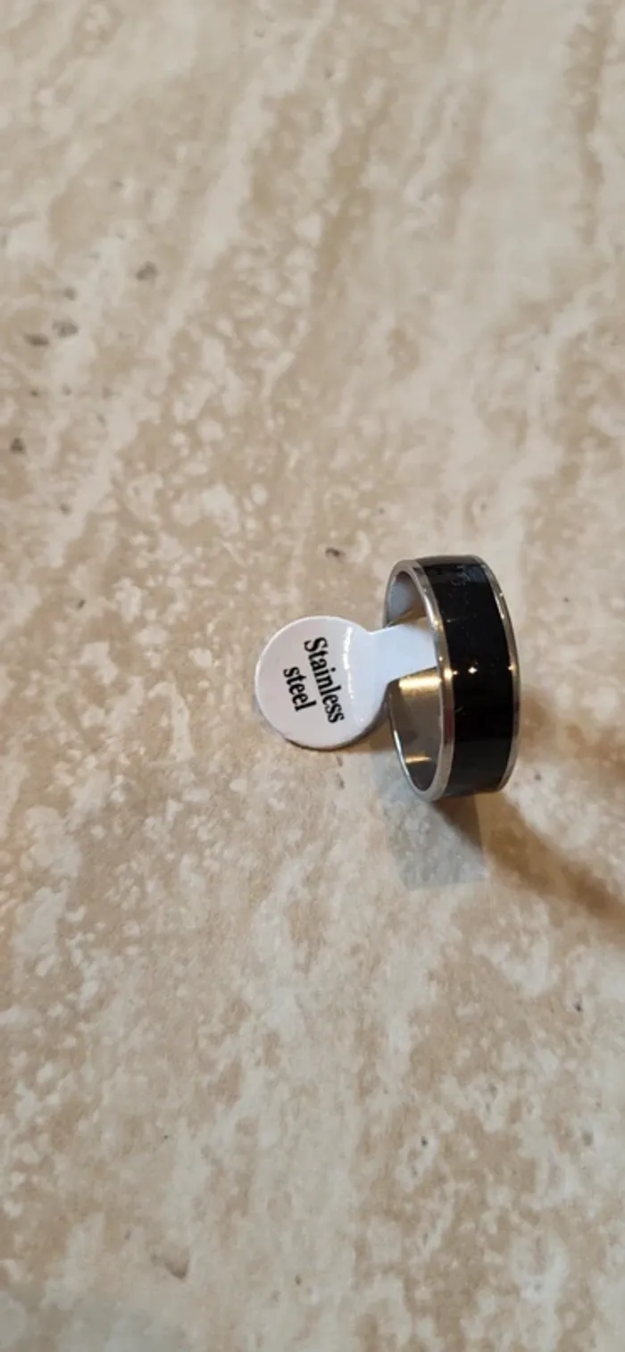 Bague acier inoxydable argentée et noire – Taille 20 - photo numéro 2