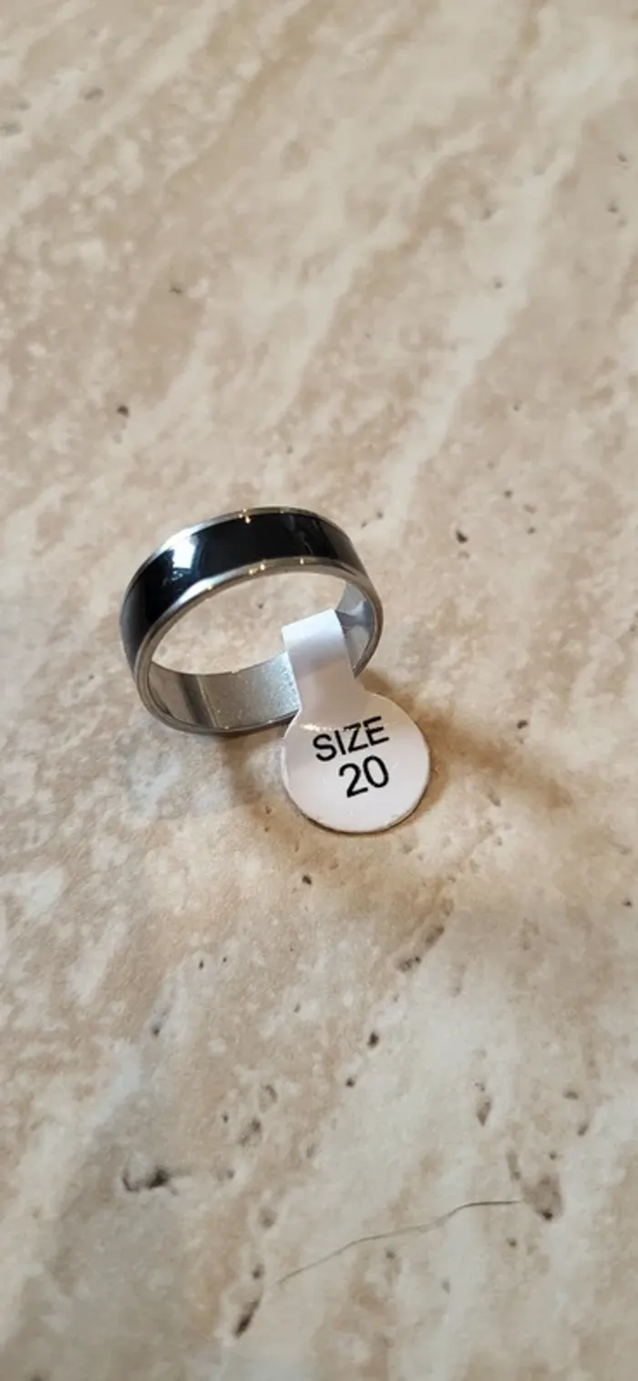 Bague acier inoxydable argentée et noire – Taille 20 - photo numéro 1