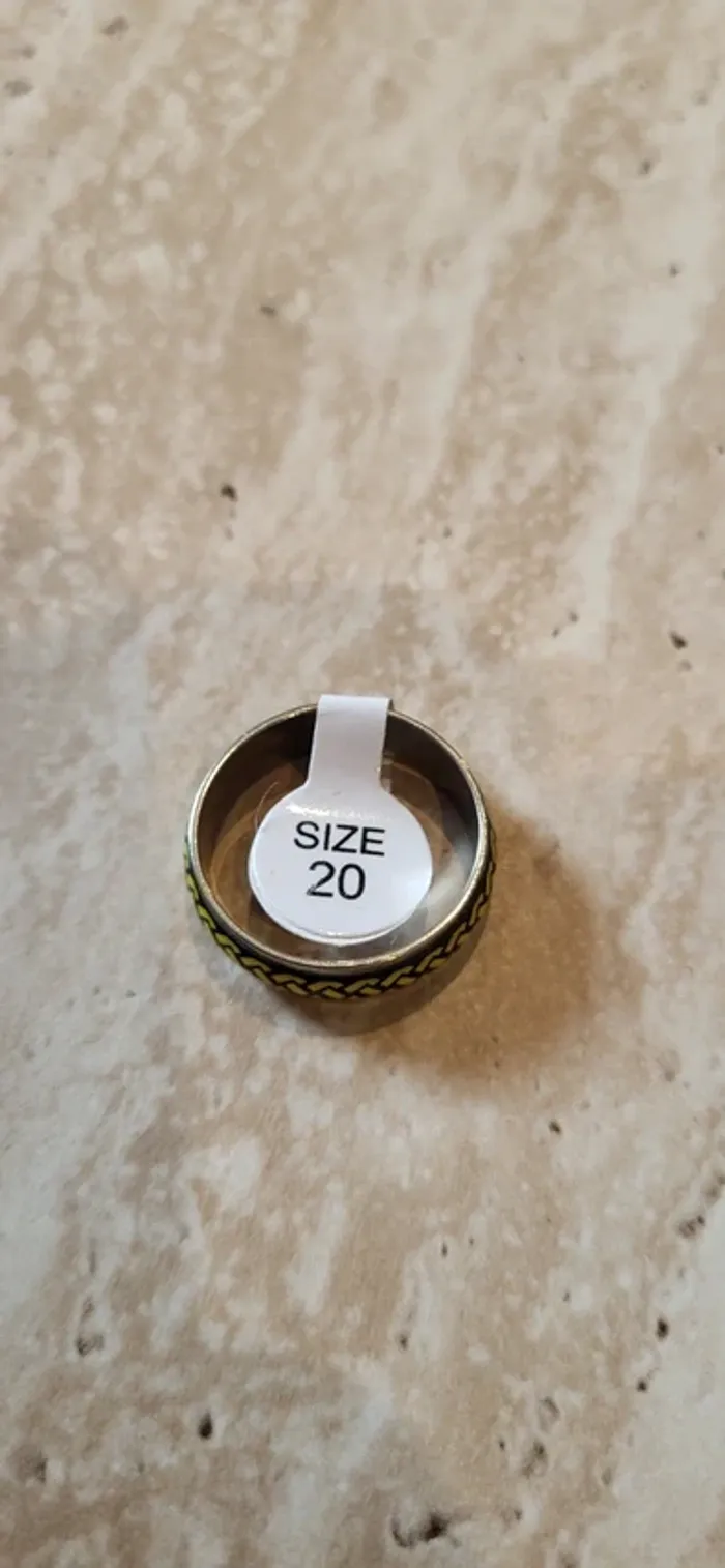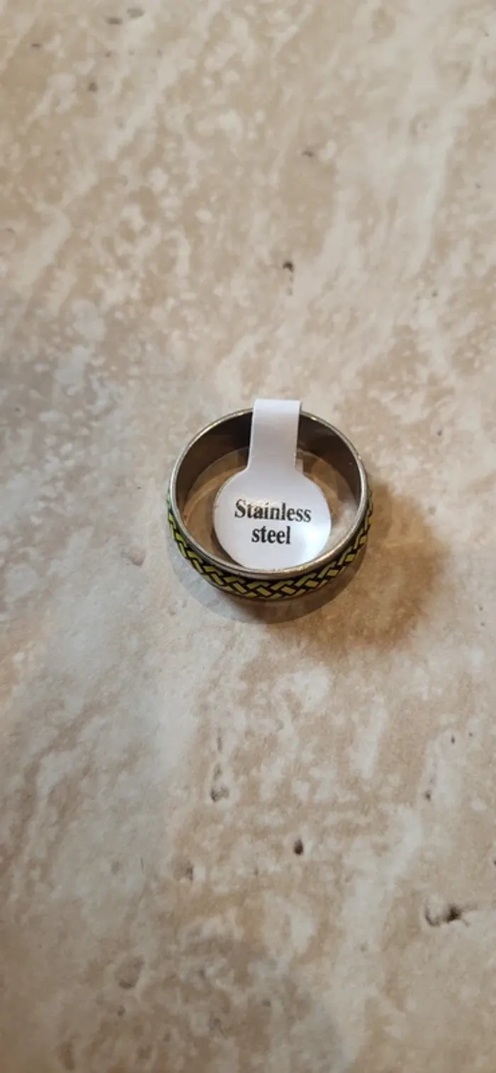 Bague acier argentée avec motif chaîne noir/jaune – Taille 20 - Neuf - photo numéro 1