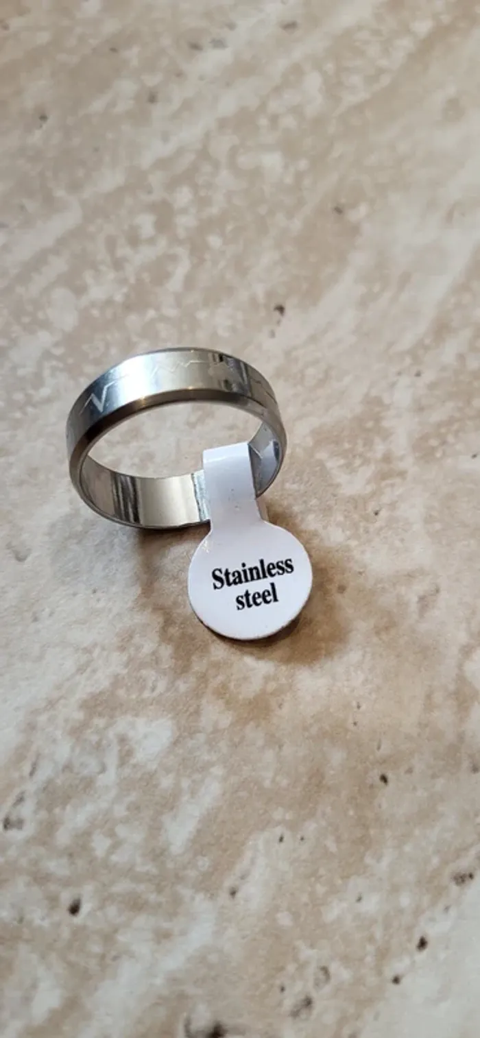 Bague acier inoxydable motif cœur & électrocardiogramme - Taille 20 - Neuf sans étiquette - photo numéro 4