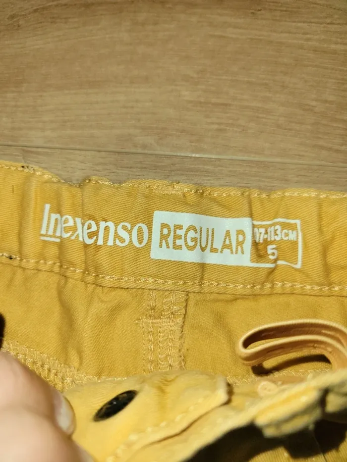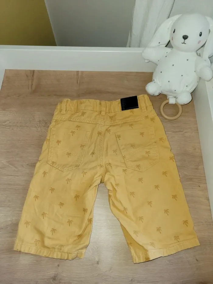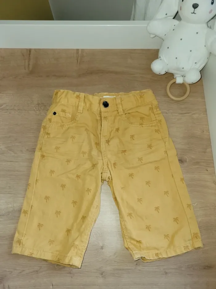 Short jaune moutarde de la marque In extenso Taille 5 ans Avec des palmiers
