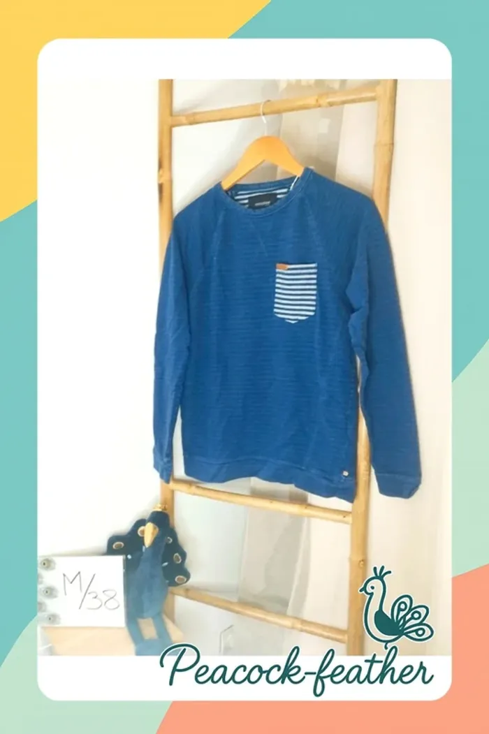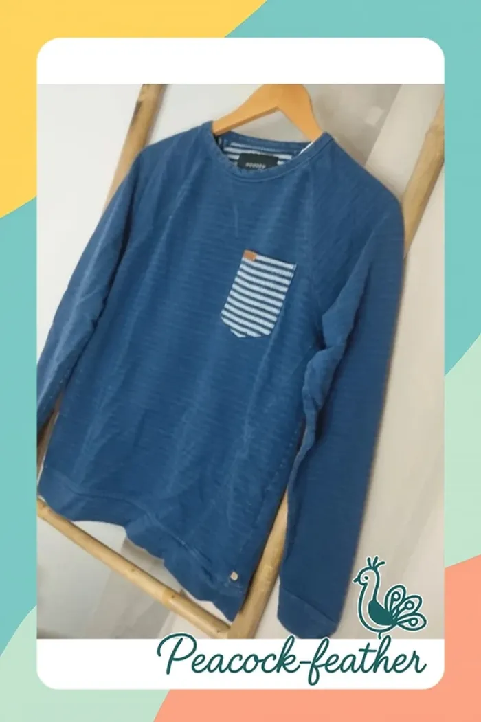 Pull bleu effet rayé, détails couture au col ,poche rayée . Matière plutôt épaisse . Taille M marque bonobo. Très bon état. *Longueur 62cm, manche (à partir du col) 72cm , aisselles 50cm * A vendre 8€ ======================================= 🔔 INFOS UTILES 🔔 💸 Possible de bénéficier d'un envoi à 99ct pour les résidents français -me contacter 💸 📦 arrangement possible pour les commandes importantes 🚭maison non fumeur & sans animaux 🐶 📵pas de photos portées 📅pas de réservation 👇pour voir d'autres de mes articles cliquez ci-dessous 👇 #peacockfeather #peacockfeathermhomme #bonobo