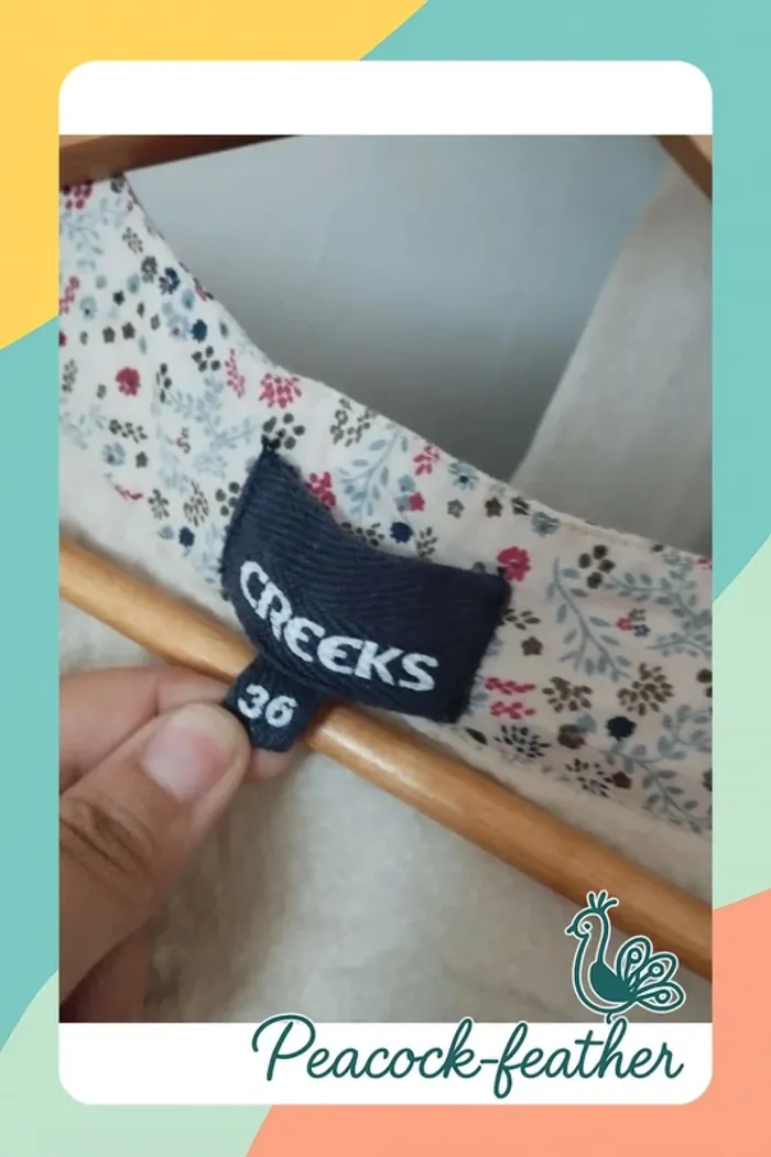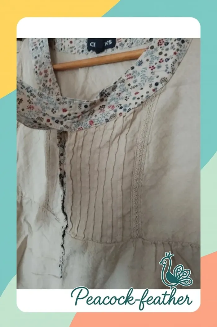 blouse manches courtes beige , col avec boutons ; rubans liberty bleuté , matière à effet ; marque creeks , taille 36 , état neuf lavé A vendre 4€50 ======================================= 🔔 INFOS UTILES 🔔 💸 Possible de bénéficier d'un envoi à 99ct pour les résidents français -me contacter 💸 📦 arrangement possible pour les commandes importantes 🚭maison non fumeur & sans animaux 🐶 📵pas de photos portées 📅pas de réservation 👇pour voir d'autres de mes articles cliquez ci-dessous 👇 #peacockfeather #peacockfeather36femme #creeks