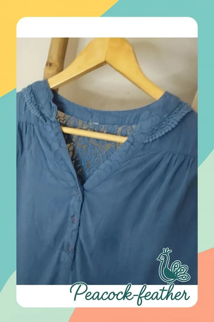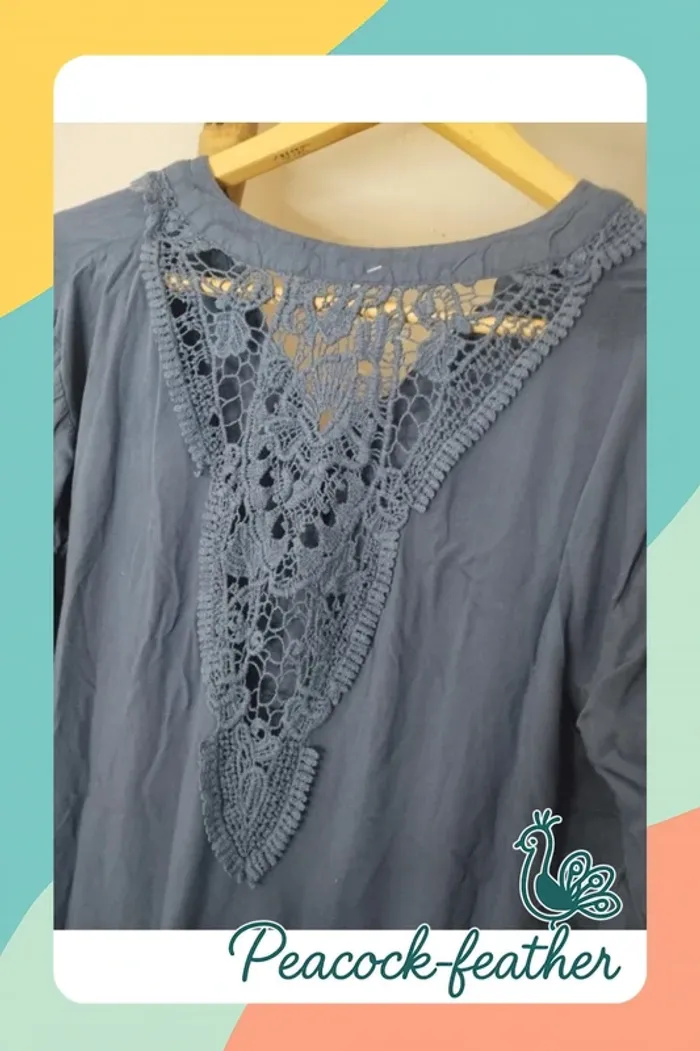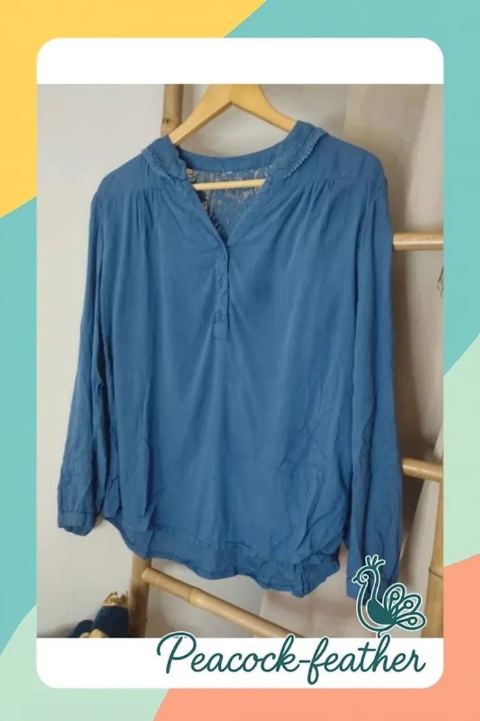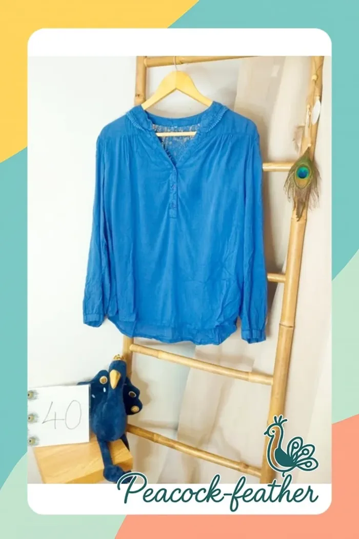 Blouse bleue dentelle 40 - photo numéro 1