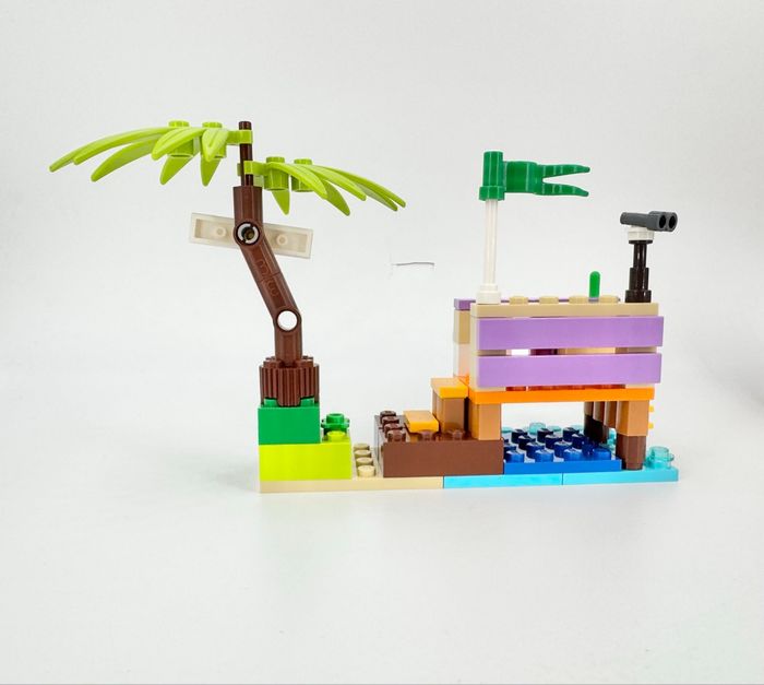 Bonjour, Acheté pour quelques éléments qui m’intéressaient plus particulièrement (tels que chien, figurine ou skateboard), je les ai finalement retrouvés en double dans ma collection. Aussi, je vous propose ce set : - en excellent état - complet (4 pièces neuves rajoutées pour compléter le set) - avec notice d’origine en excellent état également - autocollants posés proprement (à noter : il en manque 1 sous le palmier). Envoi soigné et protégé.