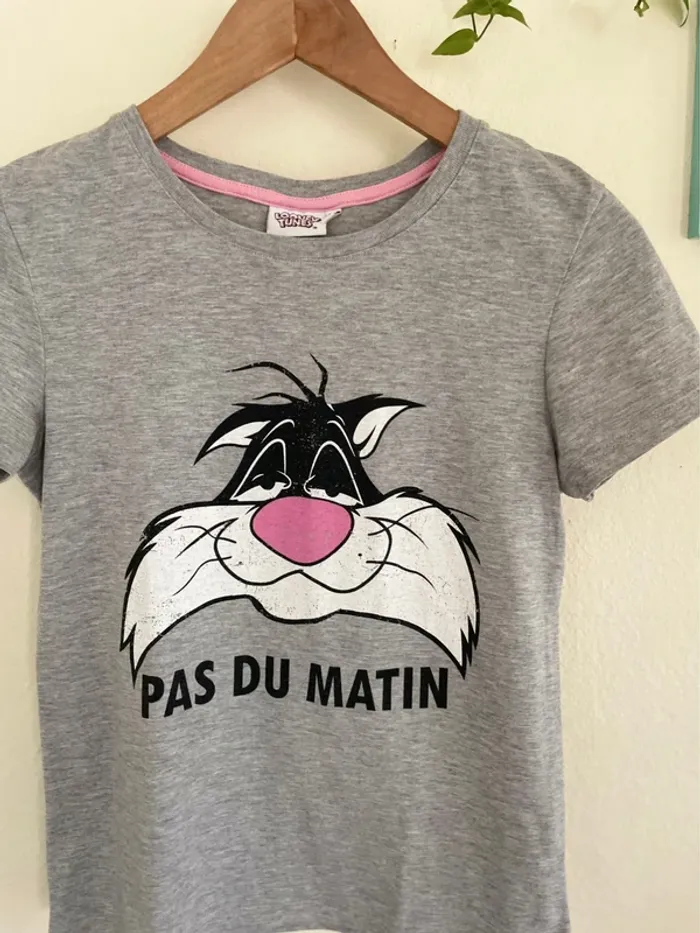 #tshirtmanchescourtes #tshirtgris #pasdumatin #looneytunes #cachecache #taillexs #taille34 #etatneuf