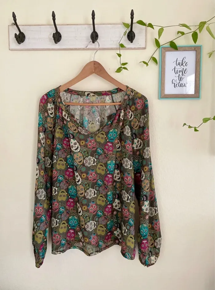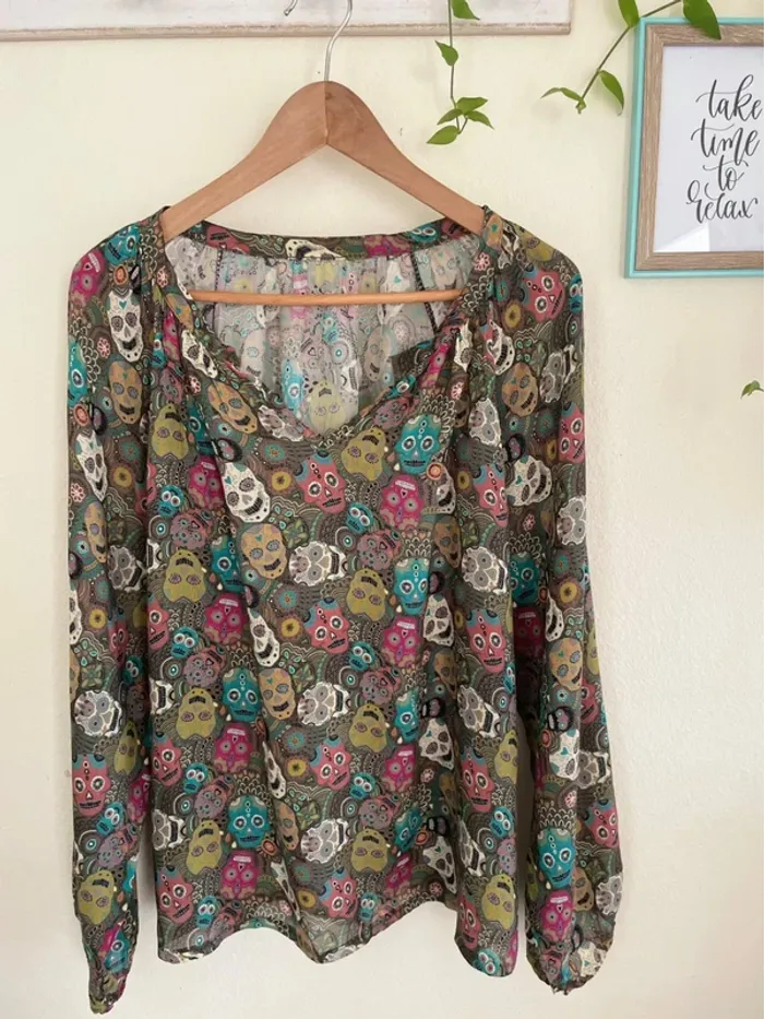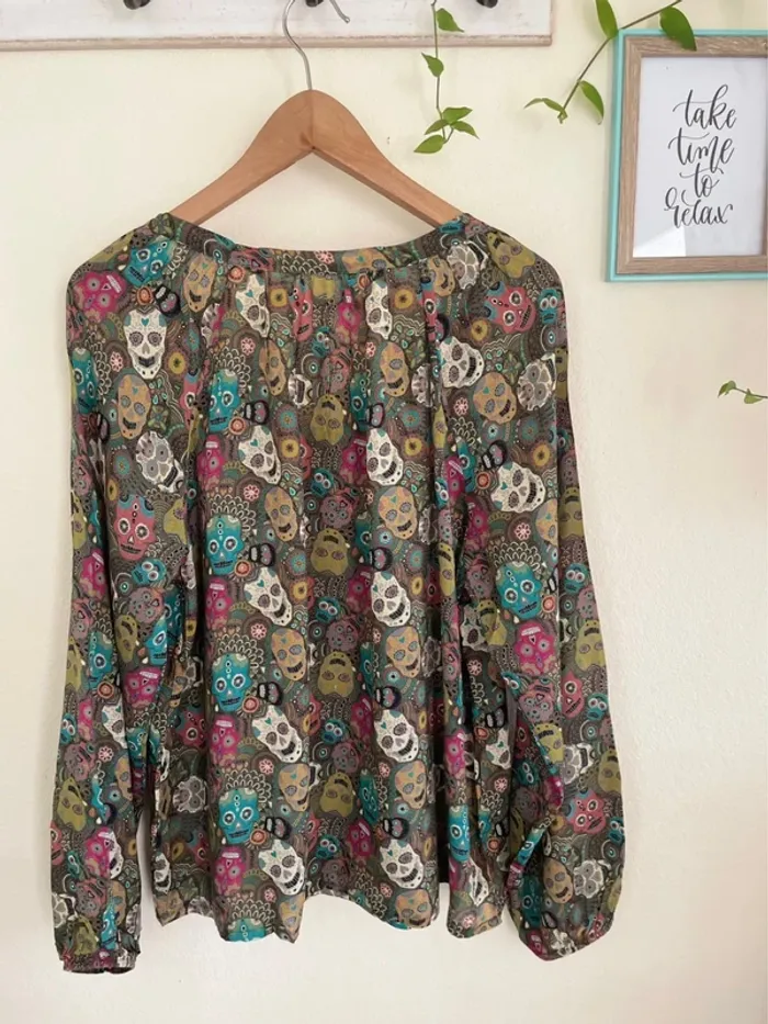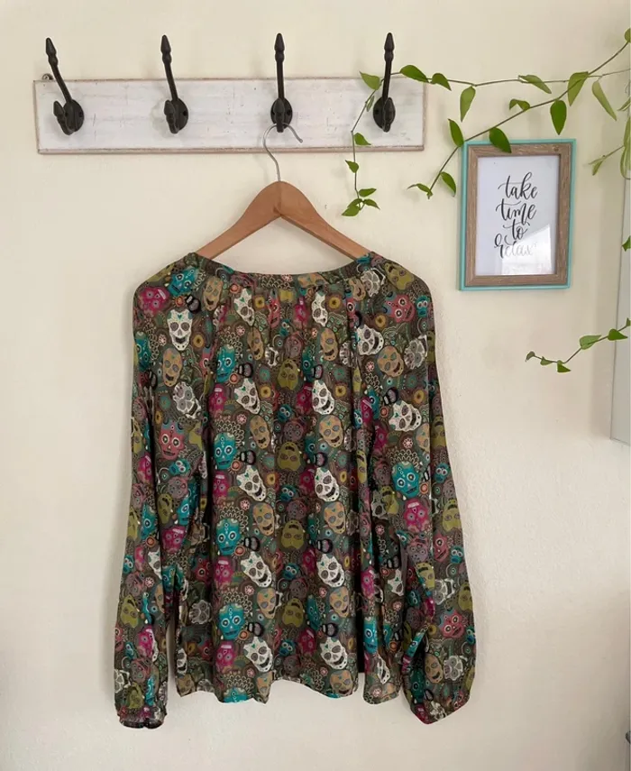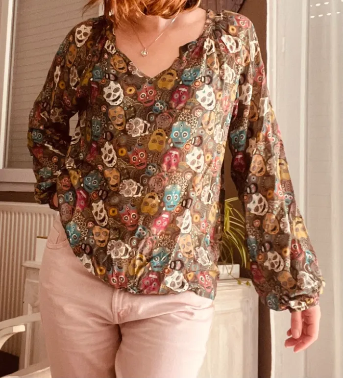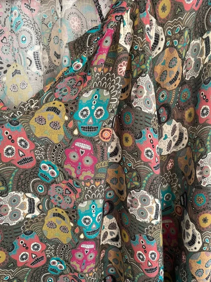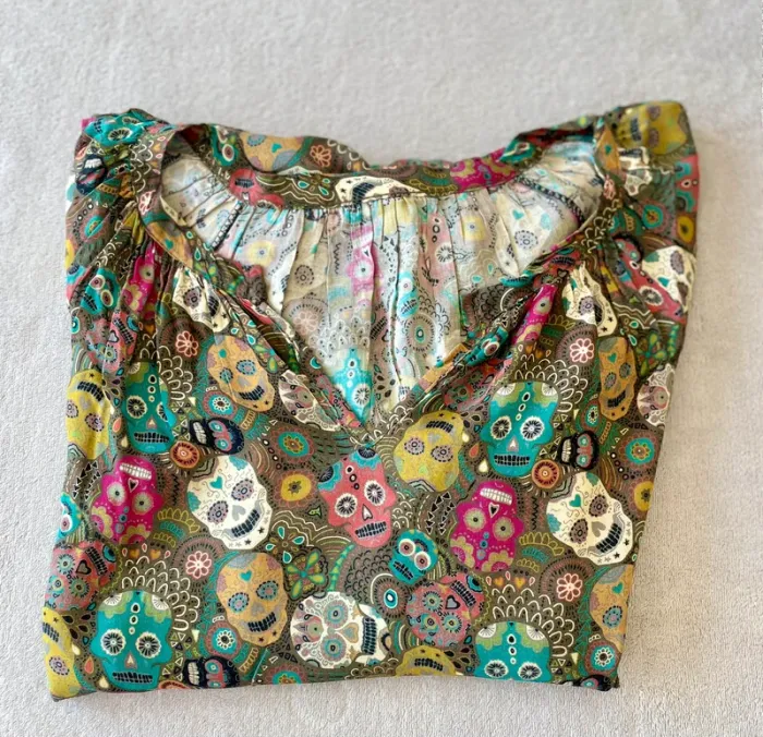 #calaveras #tetedemortmexicaine #blousefluide #blouselegere #blousemancheslongues #multicolore #madeinitaly #tailles #taille36 #taillem #taille38 #etatneuf