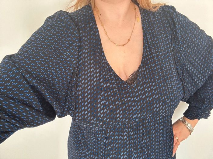 Robe courte Marque Maison 123 Taille 44 Bleu et noire Très bon état Doublée, avec manches 3/4 légère et fluide #robe #robeété #robefemme #maison123 #robe123 #robequalite #robefluide #robebleue #robecourte #robe44 #femme44