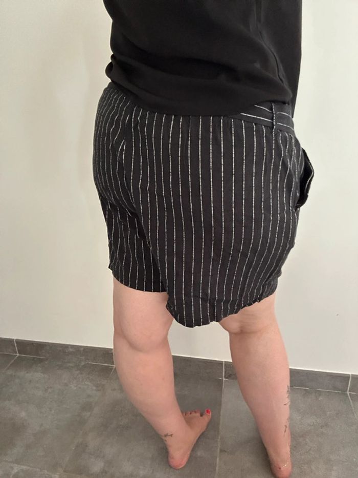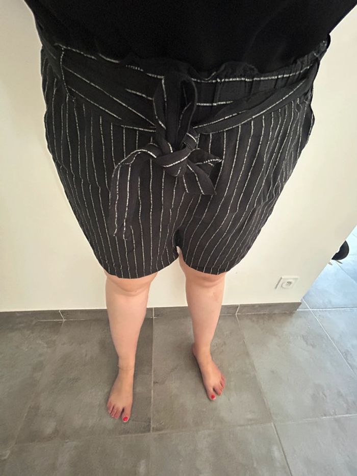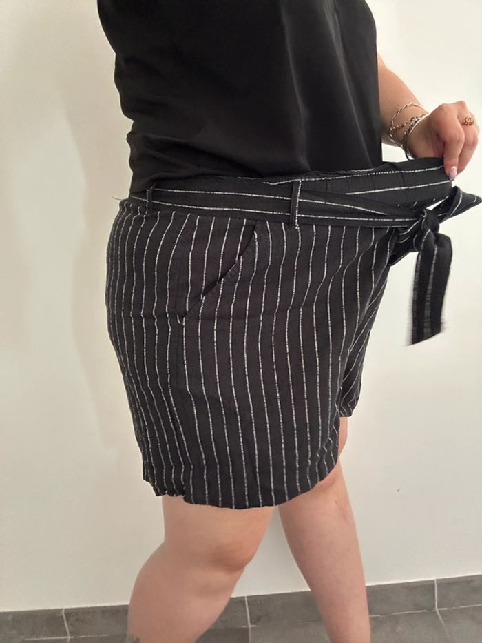 Short à rayures Marque Tex Taille 3 XL Noir et blanc Bon état #tex #texshort #shortgrandetaille #short46 #short48 #tex4648 #femme #shortcourt #shortrayures