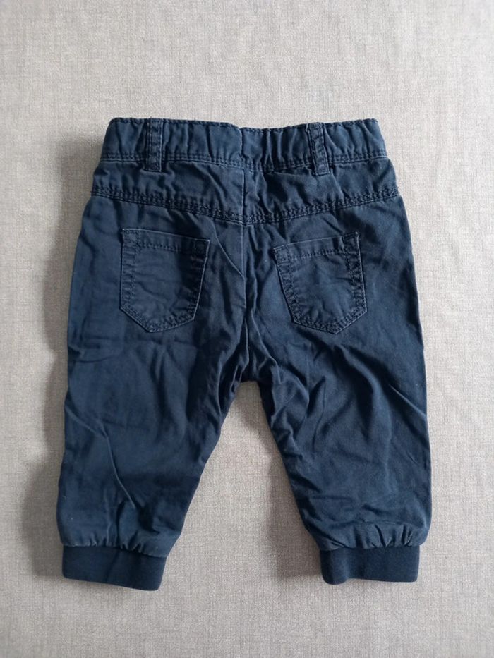 Pantalon bleu marine. Doublé léger. Matière agréable. Bébé est à l'aise. Taille 6 mois. Excellent état. Tape à l'œil.