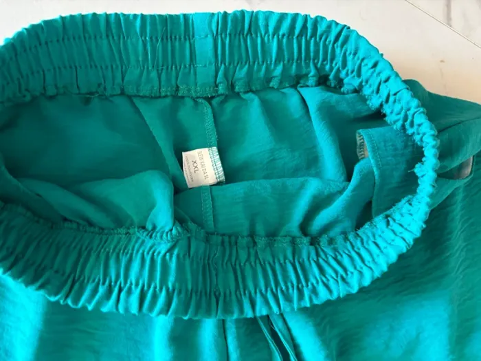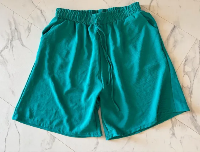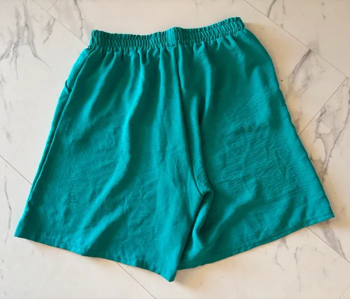 Joli short turquoise pour femme T. 44, en polyester, en très bon état. Ceinture elastiquée. #merine103 #merine103vetementfemme #merine103vetementfemme44
