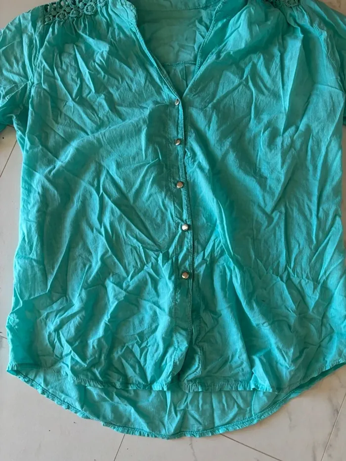 Beau chemisier bleu turquoise T. 44 femme TBE - photo numéro 2