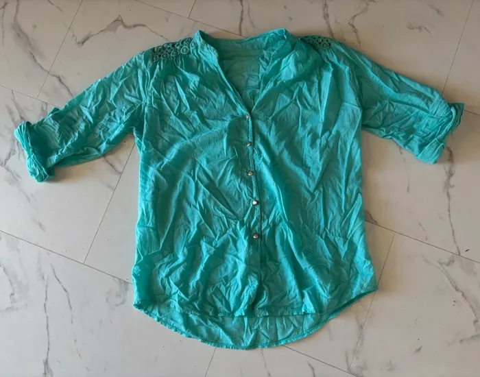 Beau chemisier bleu turquoise pour femme T. 44, en coton, en très bon état. #merine103 #merine103vetementfemme #merine103vetementfemme44