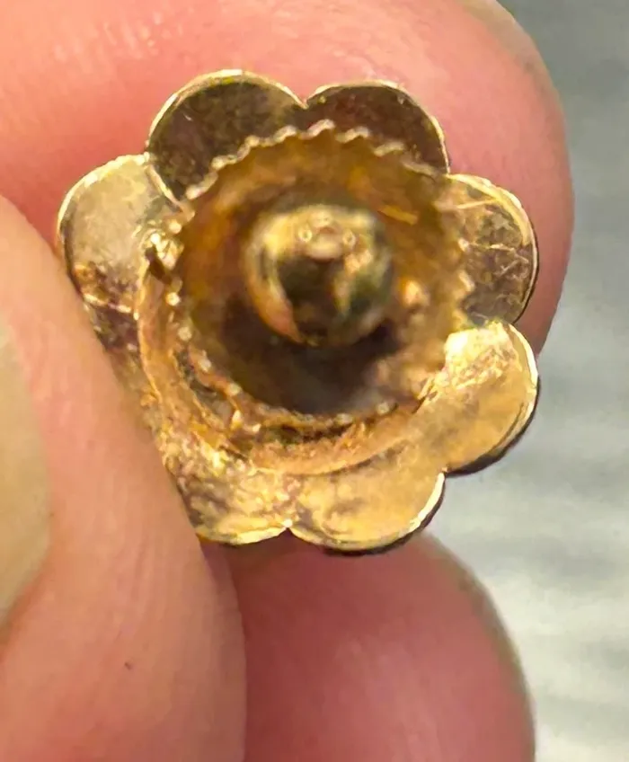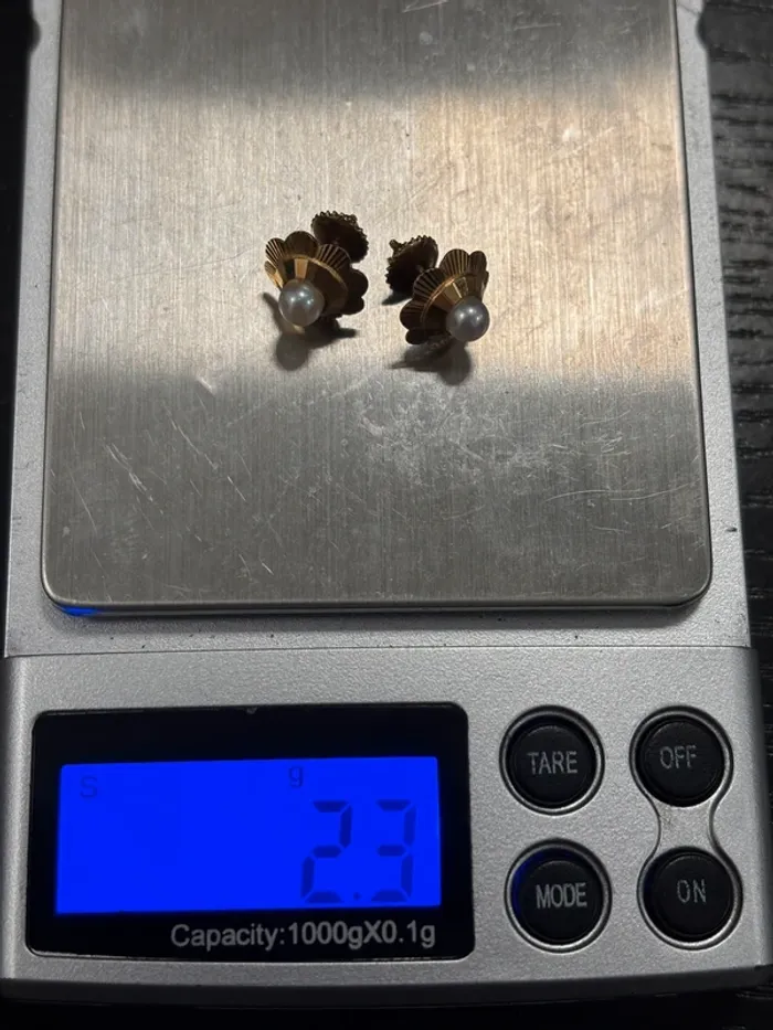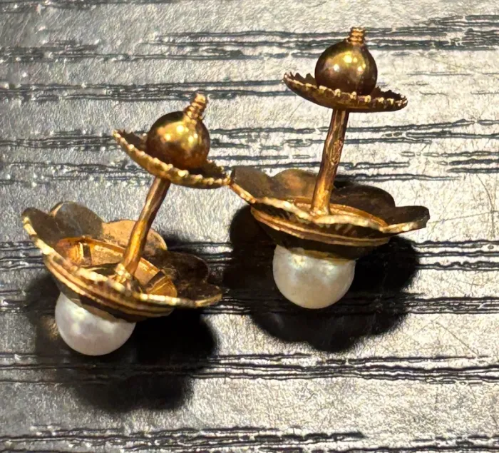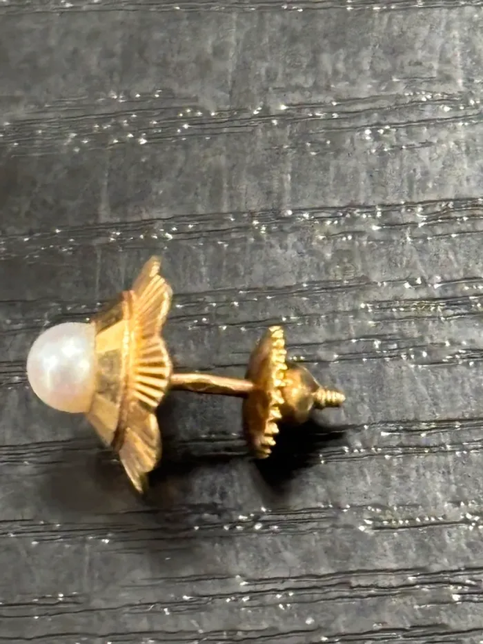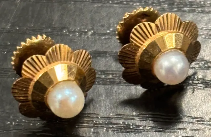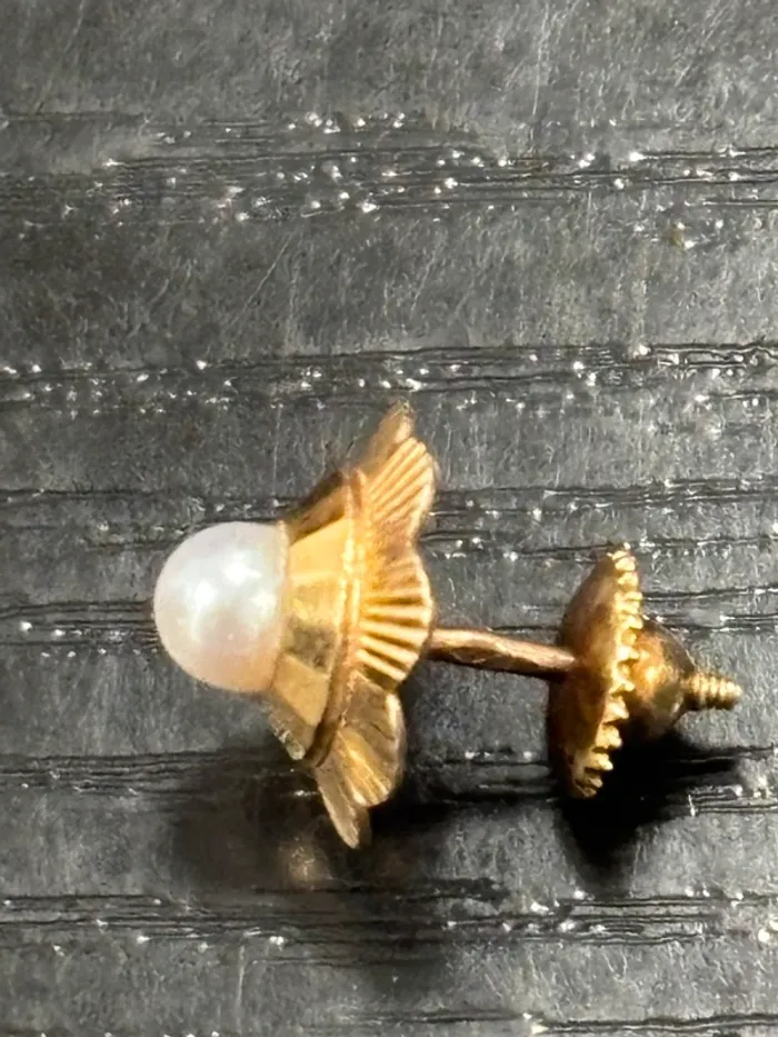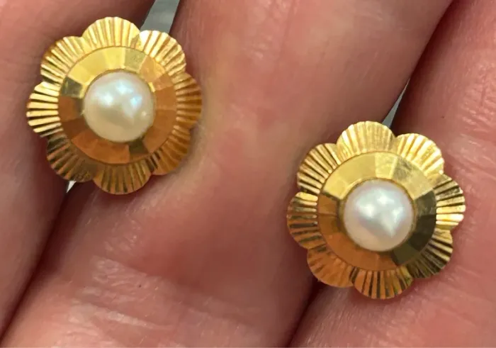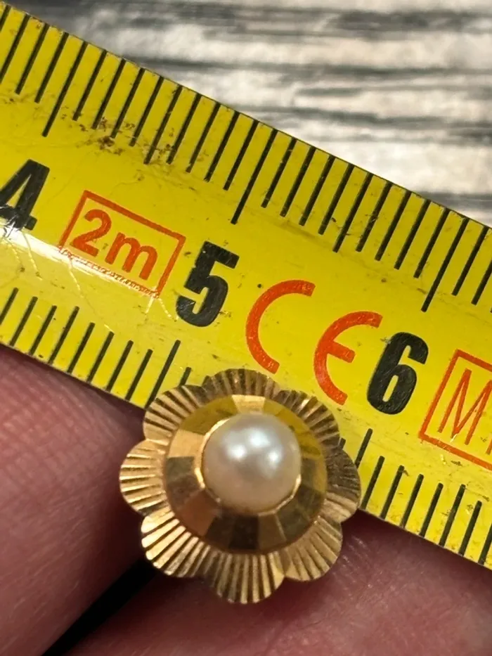 Jolie paire de boucles d’oreilles «fleurs » en or 18 carats avec perle femme TBE