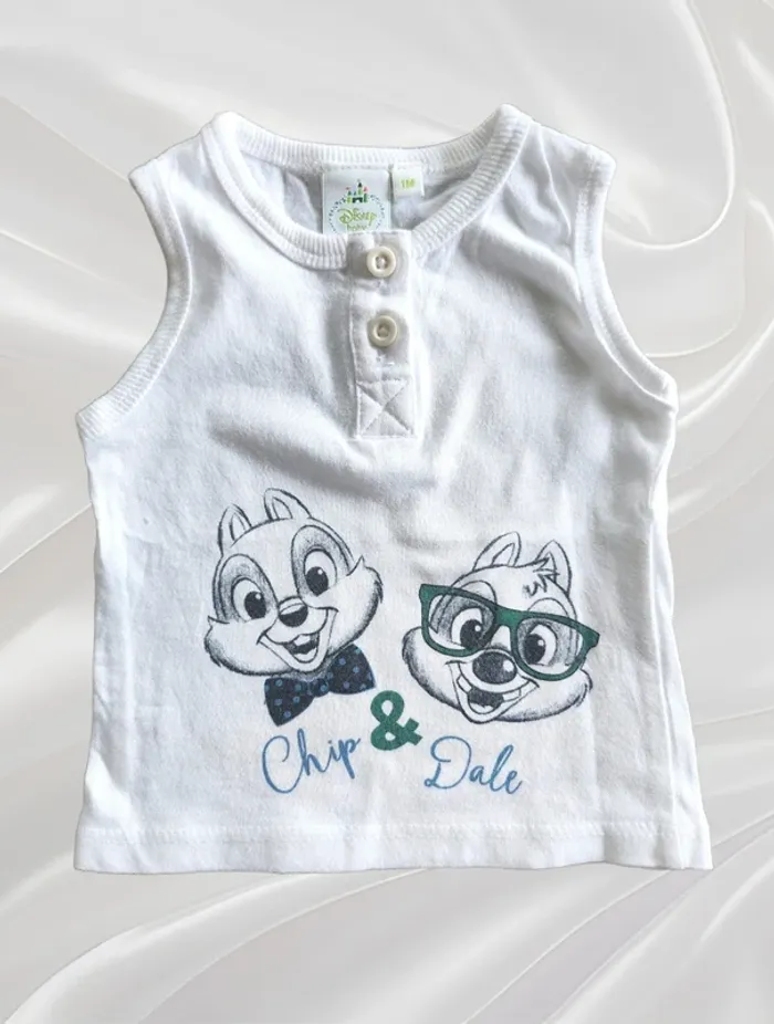 Vends ensemble composé d'un T-shirt sans manches, de couleur blanc à l'effigie de Tic & Tac, et d'un short bleu marine, taille 1 mois, de la marque Disney. Remise en main propre possible ⚠️ Pas d'envoi par Vinted Go car aucun point dans ma région. Possibilité de faire des lots ☺️ Dressing trié par taille ⬇️ (et voir profil 💕) #Nebchan_garçon1mois