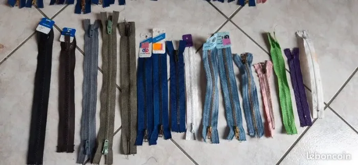 Lot mercerie : 34 fermetures à glissières toutes couleurs toutes dimensions
