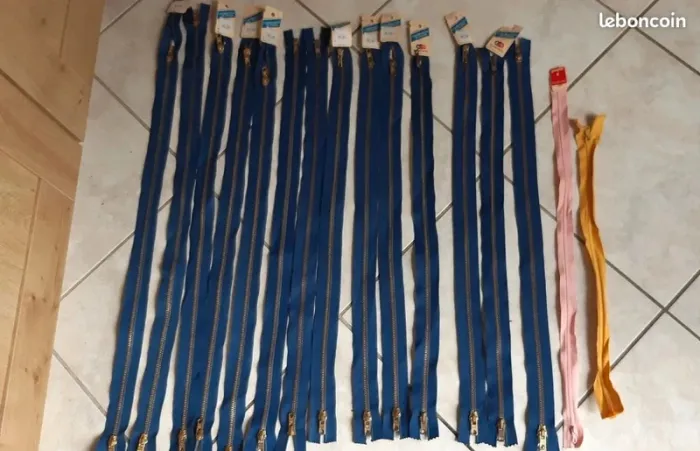 PRIX DE VENTE NON-NÉGOCIABLE Idéal pour les couturières Lot composé de 34 fermetures à glissières Toutes couleurs / toutes dimensions Il en manque 2 sur les photos (c'est un "oubli", ce sont deux blanches) Lot à Vendre "ensemble"
