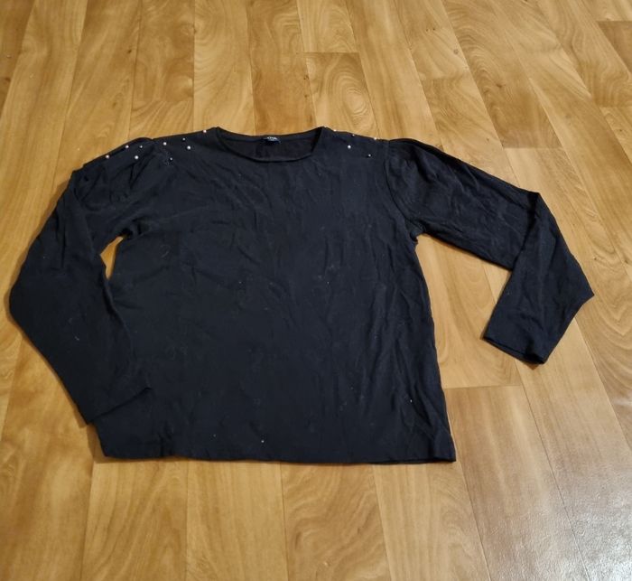 pull noir kiabi perlées aux épaules taille 12 ans - photo numéro 1
