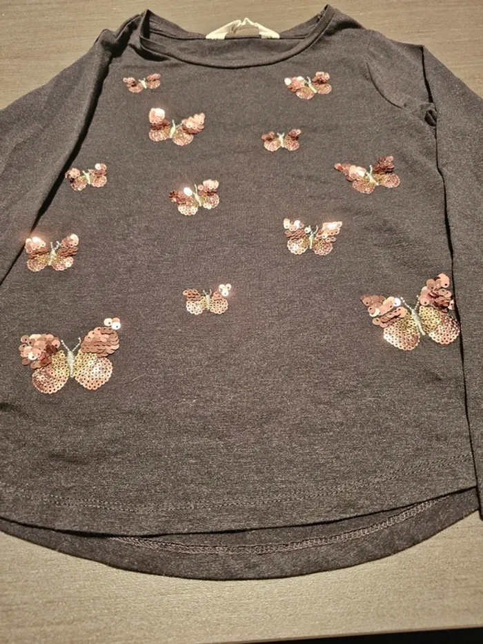 Jolie maillot fille motif papillon à strasse Taille 7-8 ans Marque H&M Couleur noir papillon strasse rose argenté En excellent état peu porté Maison non fumeur #arnaudludivinefille7ans