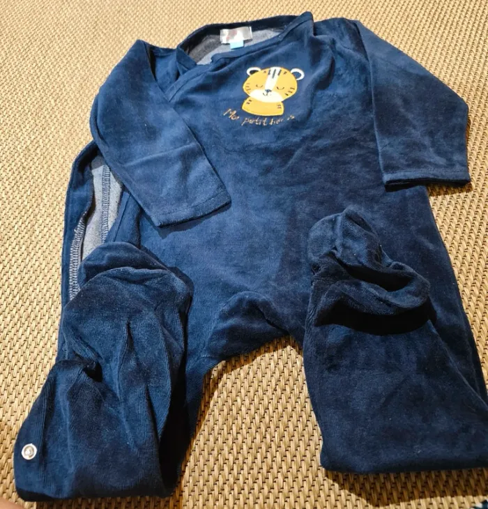 Très joli pyjama lion " mon petit héros " Couleur bleu marine Taille 23 mois Marque Manon et Valentin Pression sur le côté Tout neuf jamais porté juste lavé Maison non fumeur. #arnaudludivinegarçon23/24mois