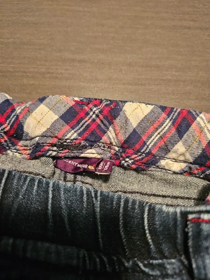 Joli ensemble 3 pièces composée: - d'une tunique reserrable à la taille - d'un jean élastique ajustable à la taille - d'un petit gilet manche courte Le tout en taille 8 ans Marque Sergent major En excellent état manque juste la déco sur 2 pressions au niveau de la tunique ( cf photo) mais n'empêche en rien la fermeture des pressions Maison non fumeur. #arnaudludivinefille8ans