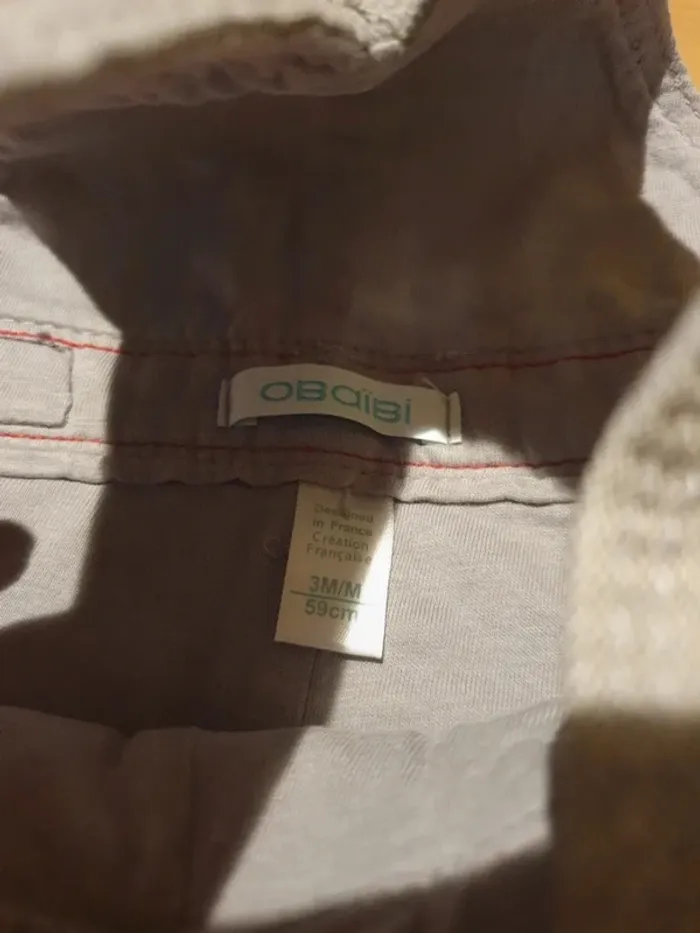 Jolie ensemble garçon salopette + maillot manche longue à pression sur l'arrière Taille 3 mois - salopette marque obaibi - maillot marque tao Peu porté en excellent état