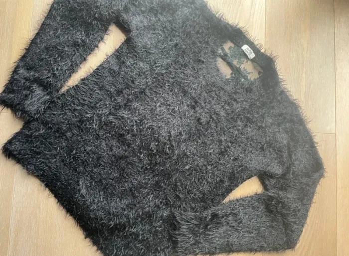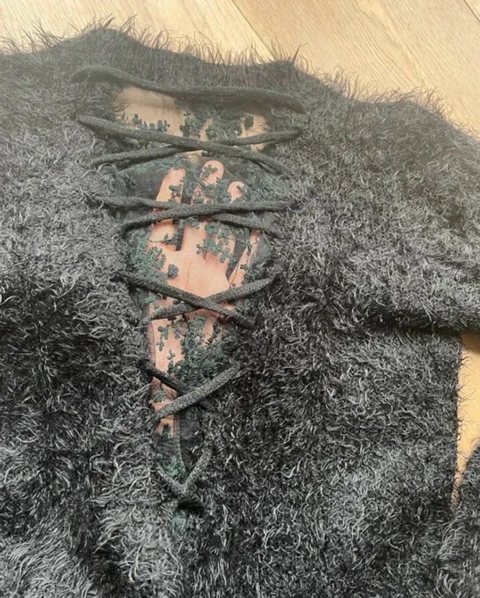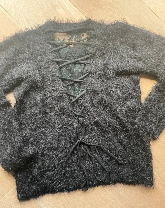 Pull noir fluffy Molly Bracken taille unique Dos dentelle à laçage 55% polyamide 45% acrylique #petchou94