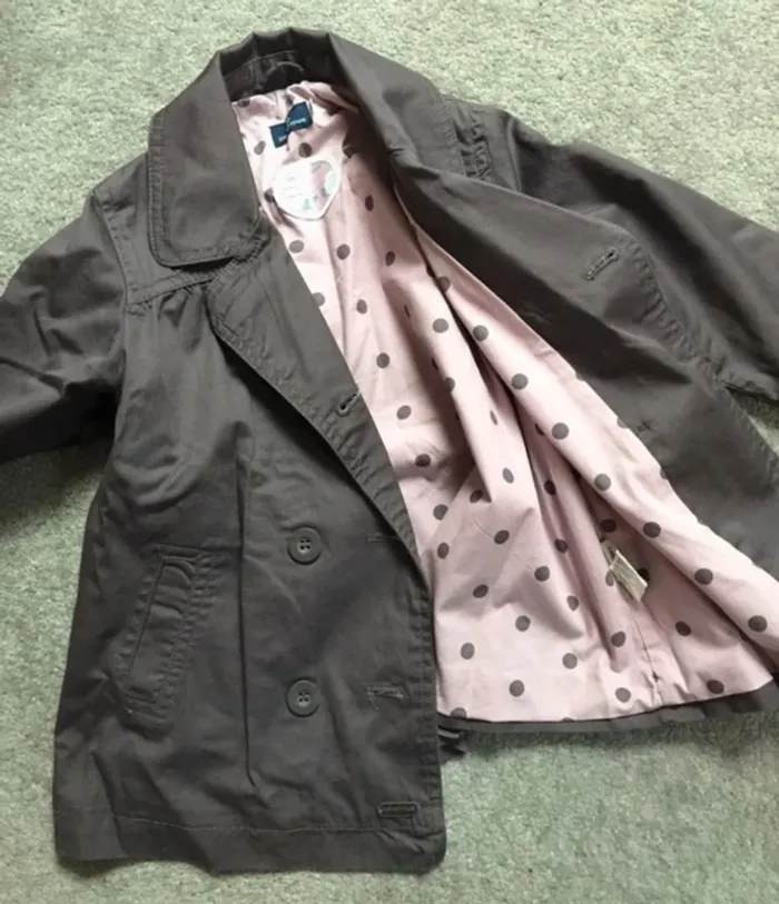 Trench Sergent Major 3 ans Coloris violet fonçé et intérieur violet clair à pois violet fonçé En parfait état Extérieur et doublure 100% coton Manches 100% polyester #petchou94