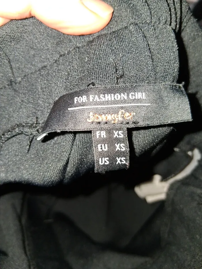 Bonjour, je vends ce pantalon noir et blanc de la marque Jennyfer taille XS en très bon état.