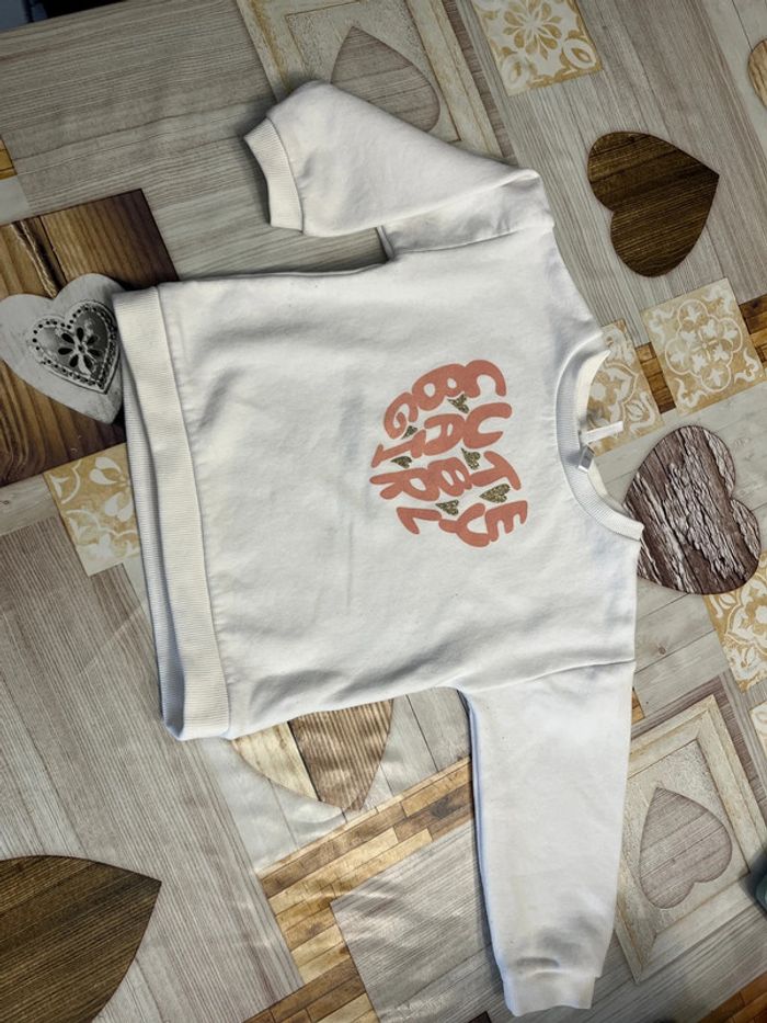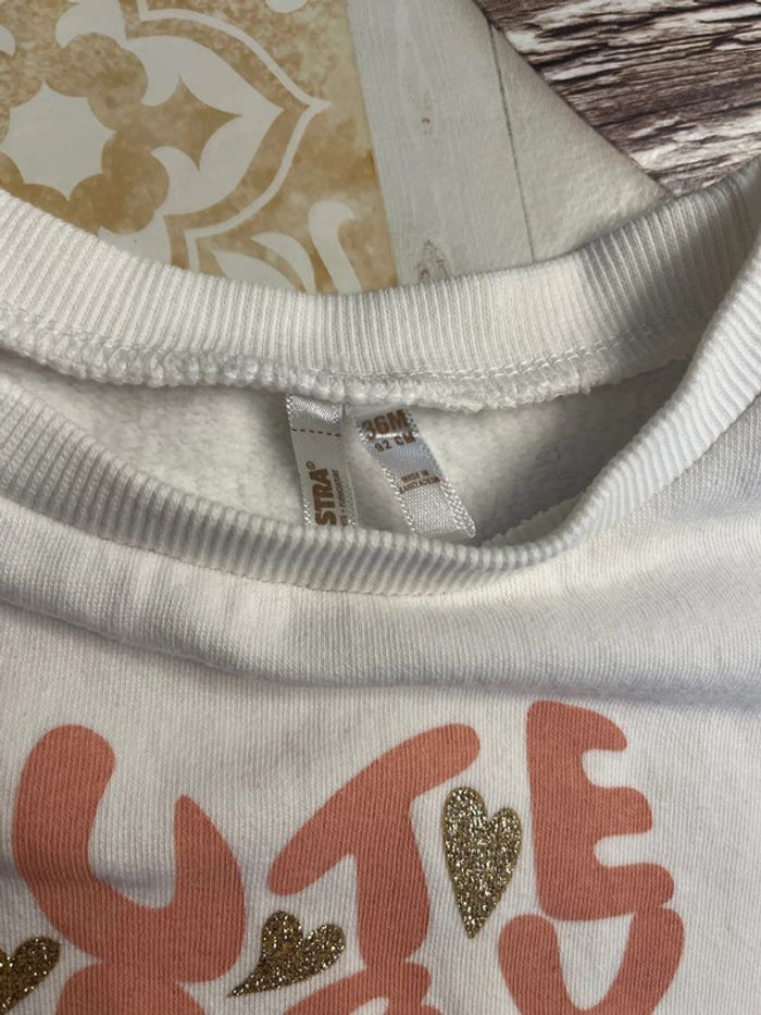 Pull blanc motif cœur et écriture Taille 36 mois (92 cm) Marque orchestra Quelques bouloches présentes (voir photo) Réduction lot activée #magnounours_enfantfille36mois