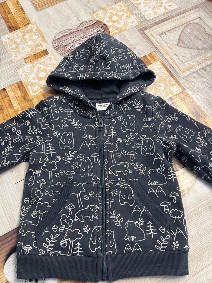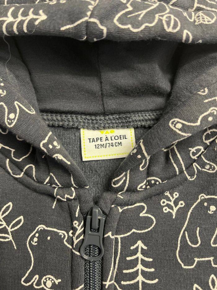 Gilet sweat à capuche et fermeture éclair Gris motif animaux (ours) Taille 12 mois (74cm) Marque Tape à l œil Réduction lot activée #magnounours_enfantgarçon12mois
