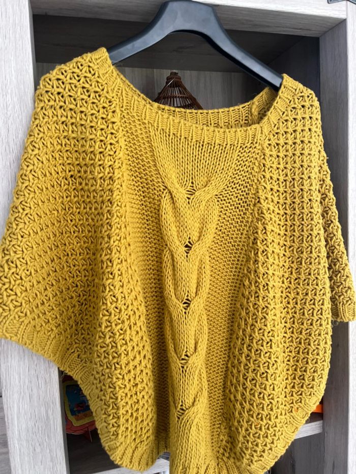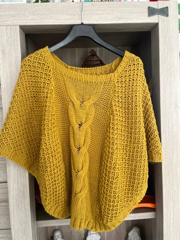Pull sans manches couleur moutarde Style poncho Quelques bouloches présentes Réduction lot activée #magnounours_femme