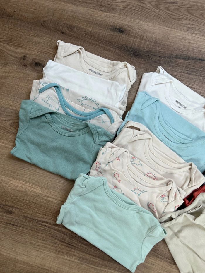 Lot de 12 bodies manches longues Indiqué état satisfaisant car ils ont été bien portés. Taille 18 mois (81cm) Marque orchestra Réduction lot activée #magnounours_enfantgarçon18mois