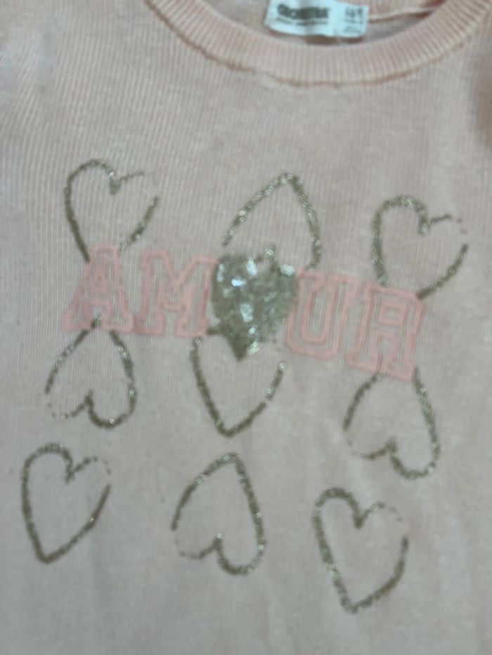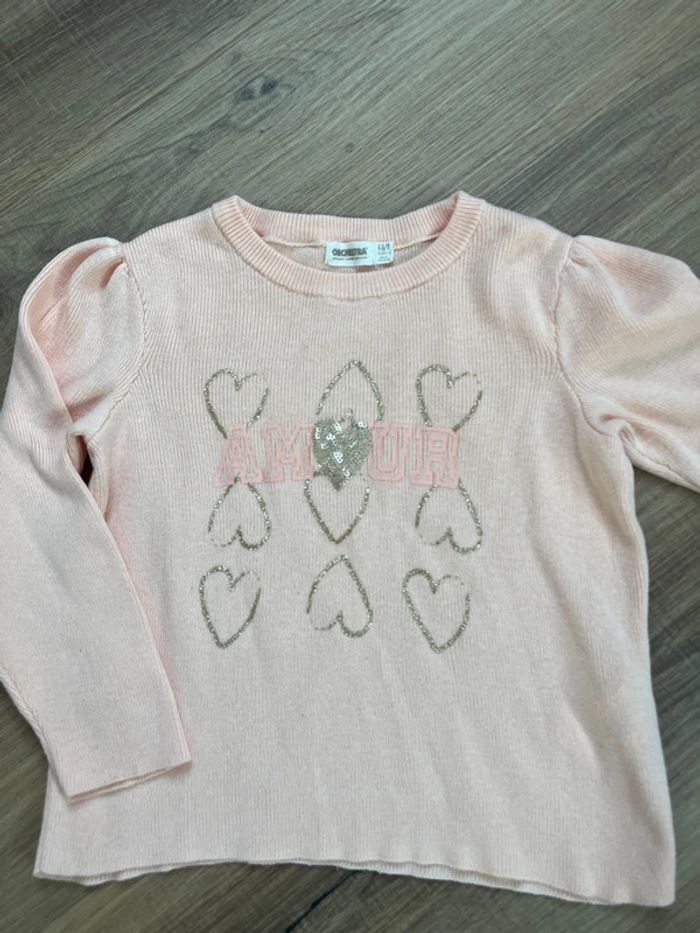 Pull motif cœur Certaines paillettes autour des cœurs sont effacés (voir photo) Taille 4 ans (104cm) Marque Orchestra Réduction lot activée #magnounours_enfantfille4ans