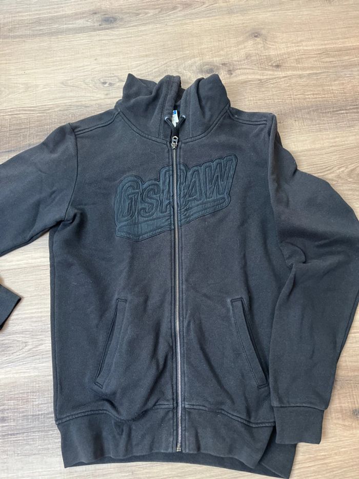 Veste /gilet à capuche et avec zip Couleur noir (couleur passée à certains endroits voir photos) Taille M Marque Gstar Réduction lot activée #magnounours_homme