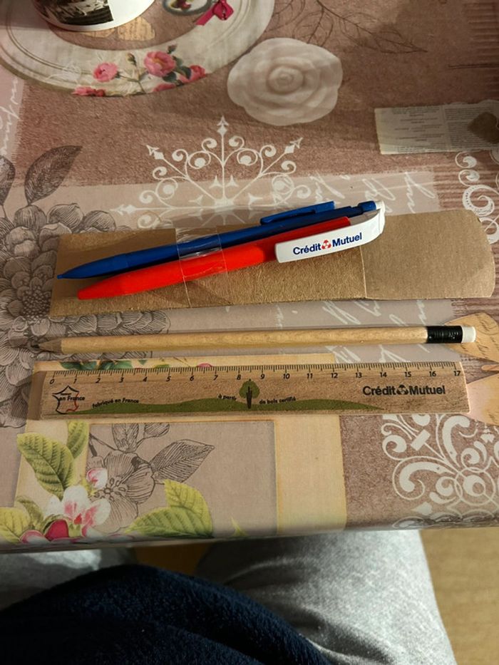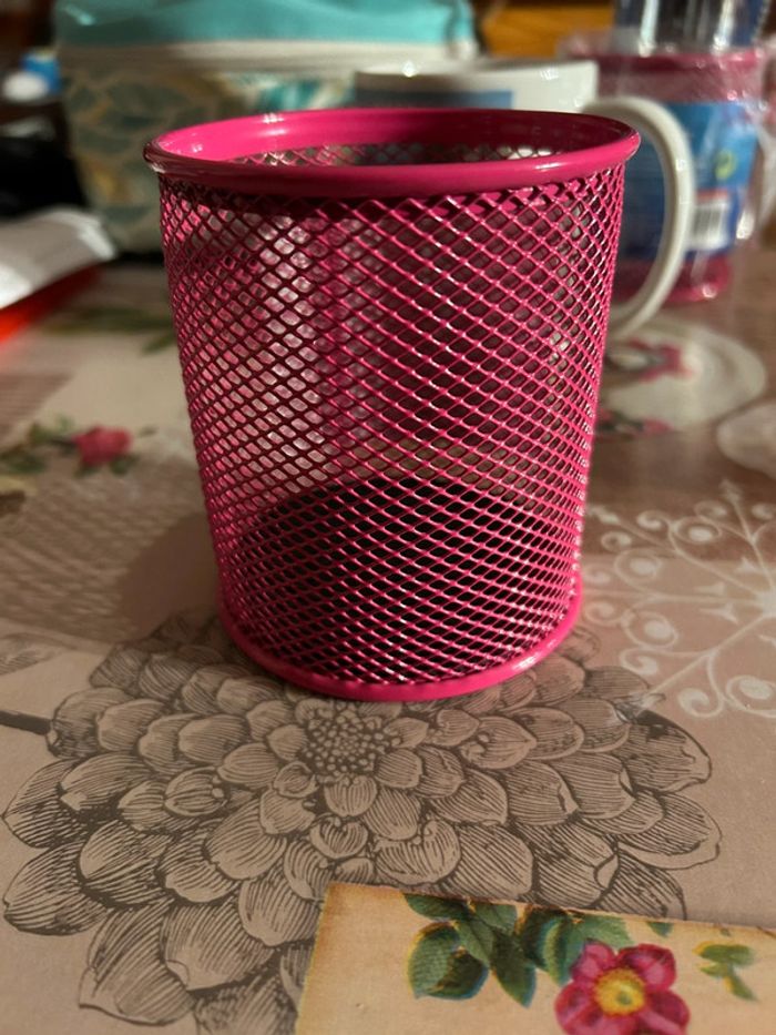 Pot à crayons Fuchsia Avec une règle en bois 2 crayons papier 1 stylo bille Le tout est neuf