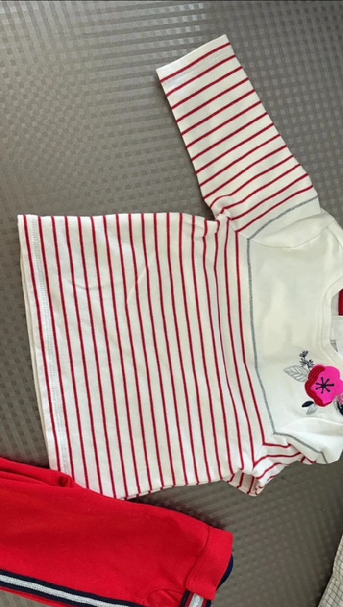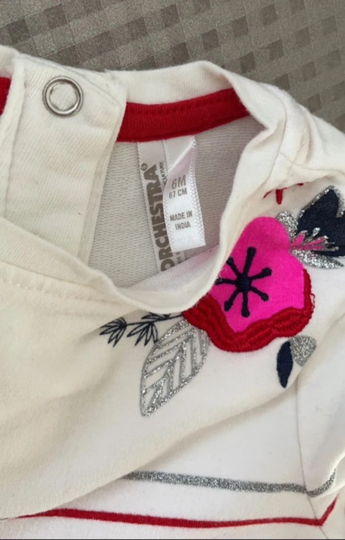 Ensemble composé d un pantalon rouge et d un teeshirt manches longues Marque Orchestra Taille 6 mois (67cm) Réduction lot activée #magnounours_enfantfille6mois