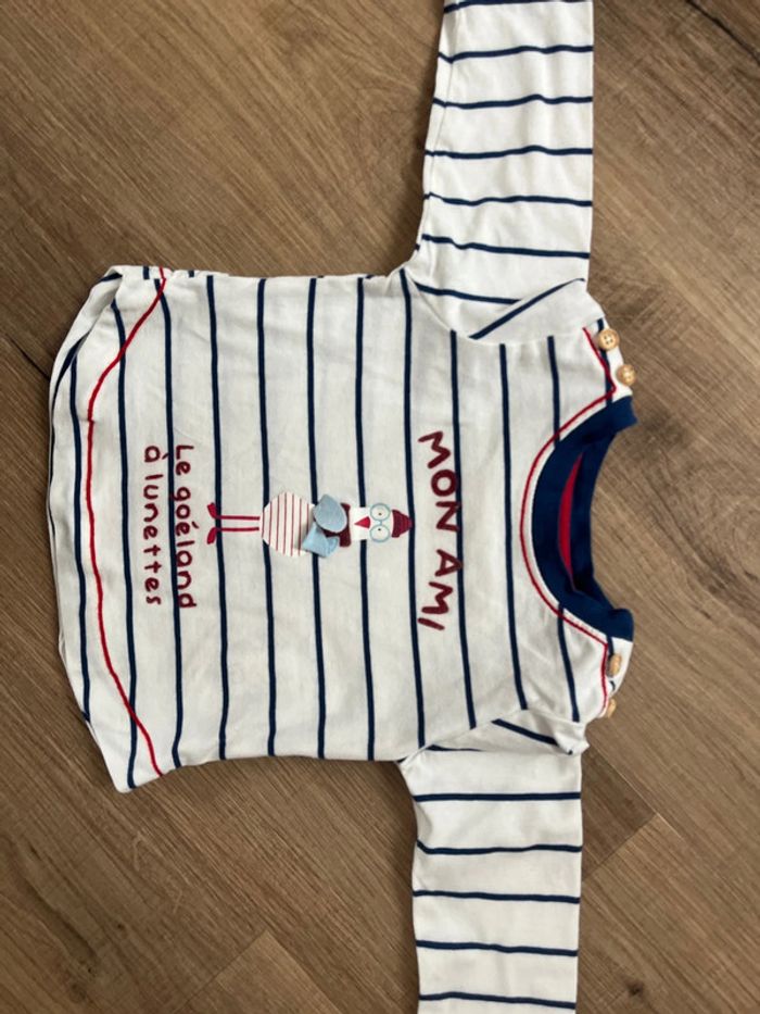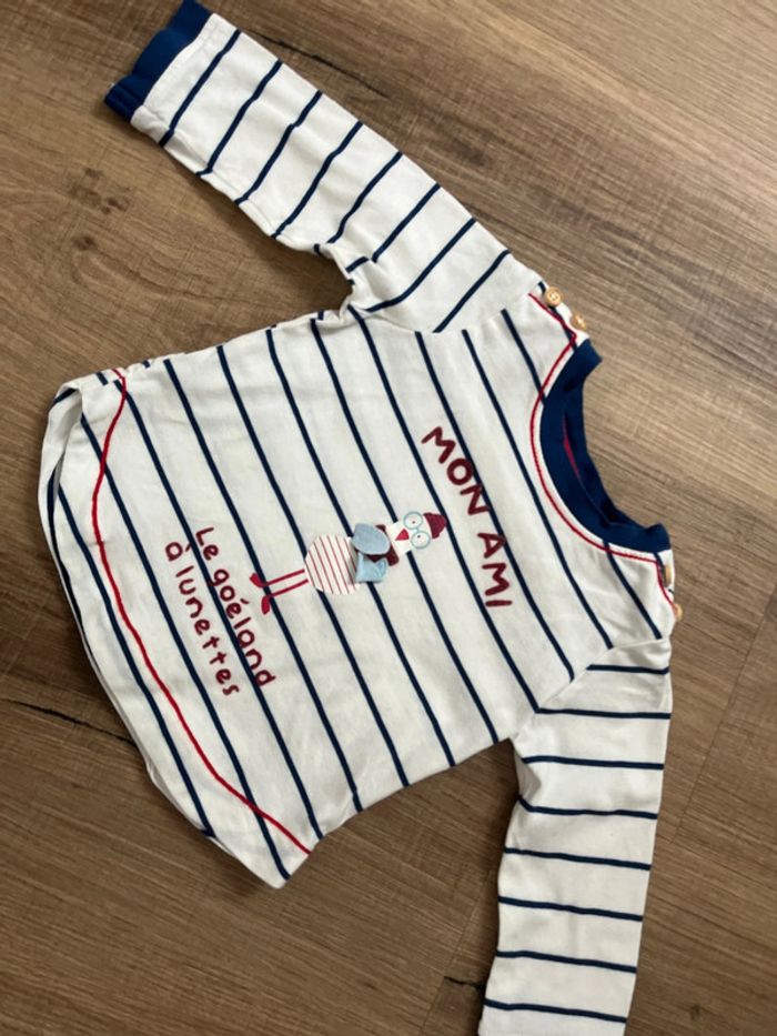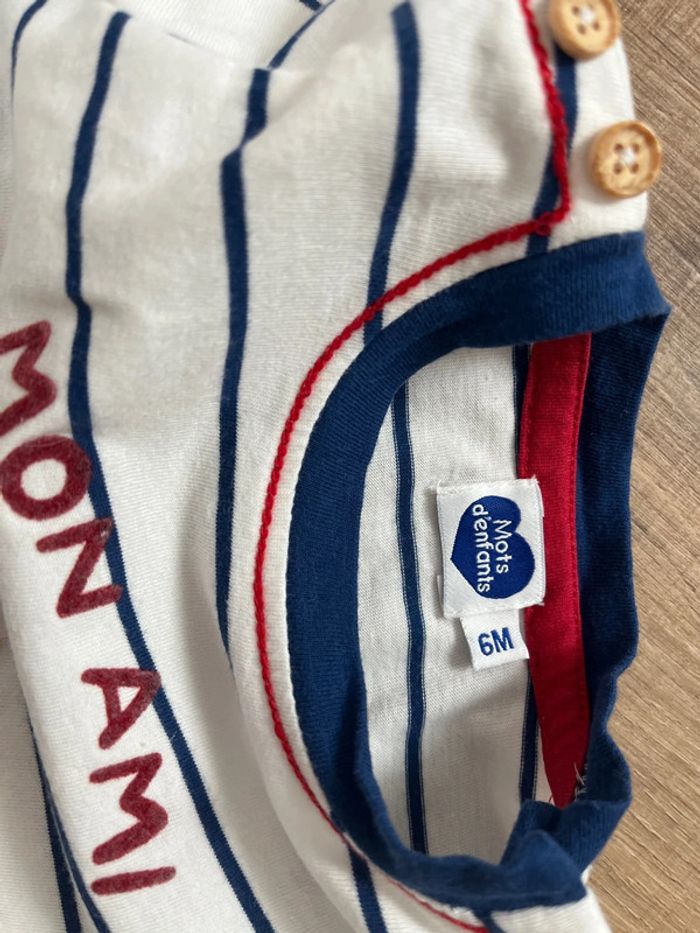 Teeshirt manches longues rayé blanc /bleu Taille 6 mois Marque Mots d enfants Réduction lot activée #magnounours_enfantgarçon6mois