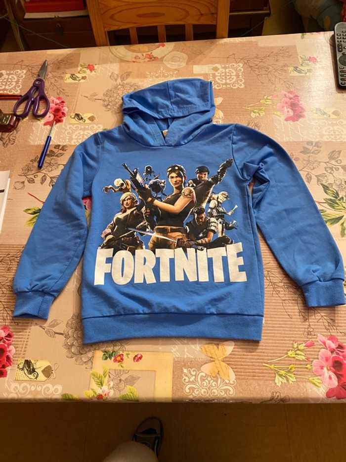 Sweat à capuche FORTNITE Taille 8 ans Couleur bleu 65% coton 35% polyester