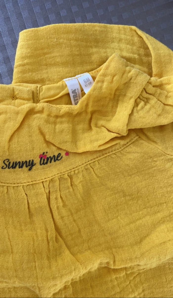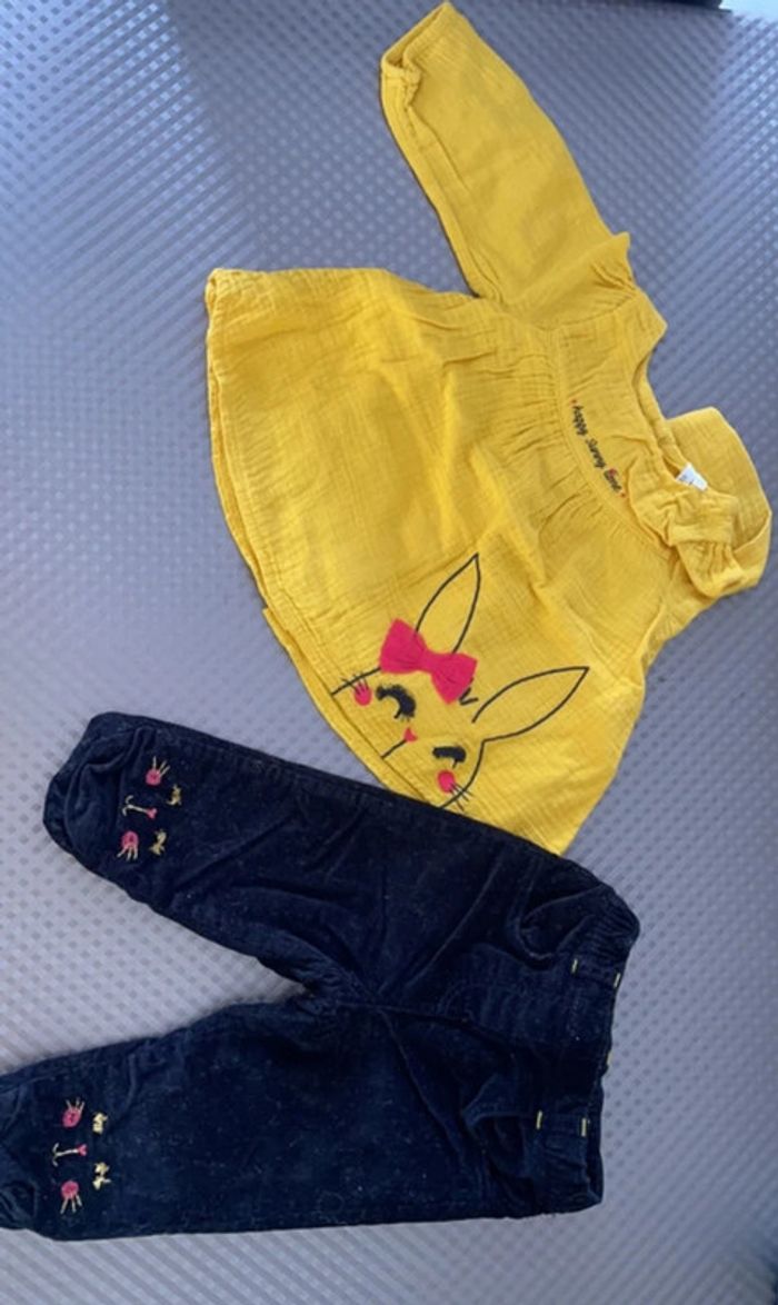 Ensemble composé d une tunique jaune et d un pantalon noir Boutons à l arrière de la tunique Marque orchestra Taille 6 mois (67 cm) Réduction lot activée #magnounours_enfantfille6mois