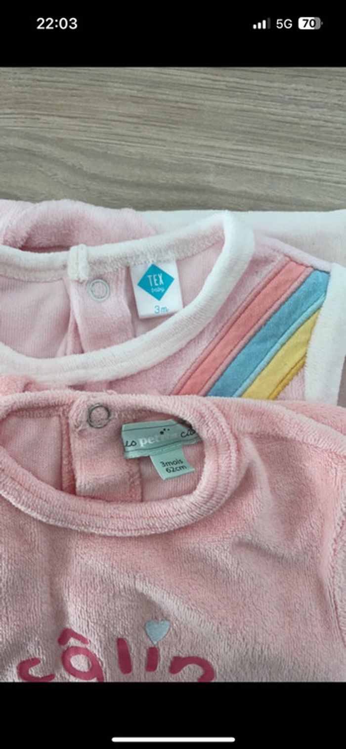 Lot de 2 pyjamas bébé fille, se boutonnant sur l arrière Marque Tex et Les Petits Cailloux Taille 3 mois (62cm) Réduction lot activée #magnounours_enfantfille3mois