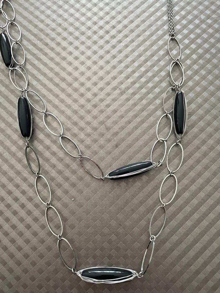 Sautoir noir argenté Avec boucles d oreilles Réduction lot activée #magnounours_femmebijoux