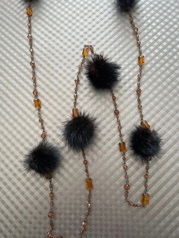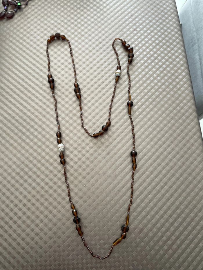 Lot Sautoir couleur ambre et boule poilue et sautoir marron perle - photo numéro 1