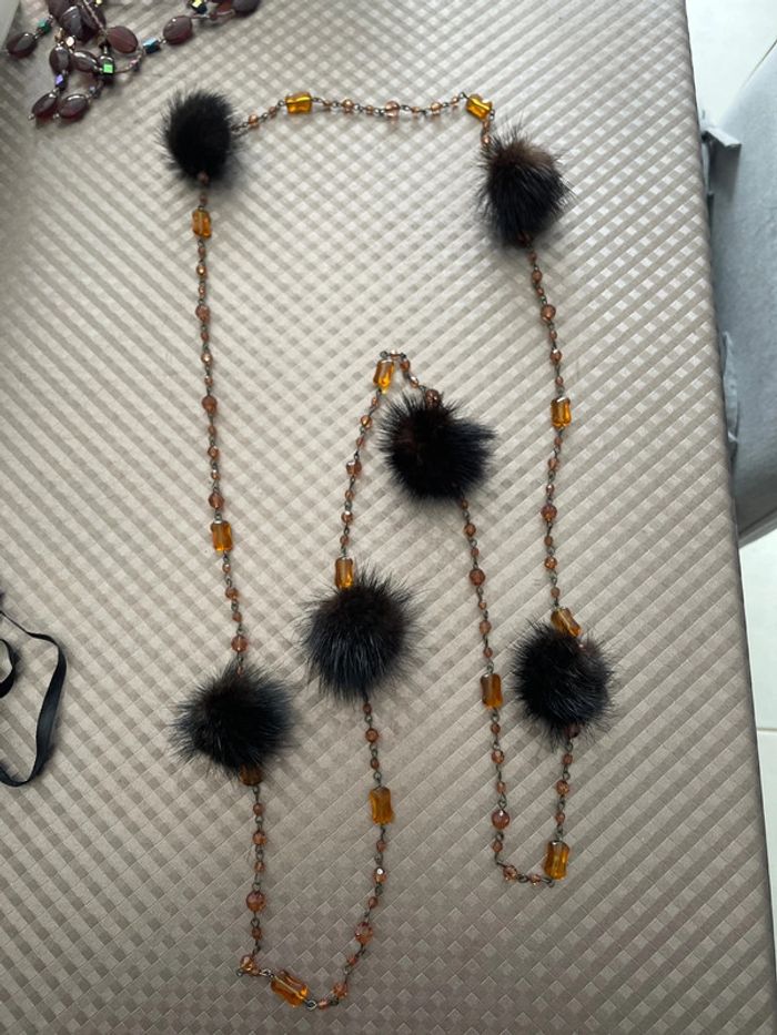 Lot Sautoir couleur ambre et boule poilue et sautoir marron perle - photo numéro 3