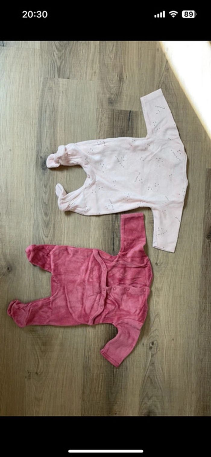 Lot deux pyjamas fille de couleur rose (clair et foncé ) chauds Marque kiabi Taille 1 mois Réduction lot activée #magnounours_enfantfille1mois