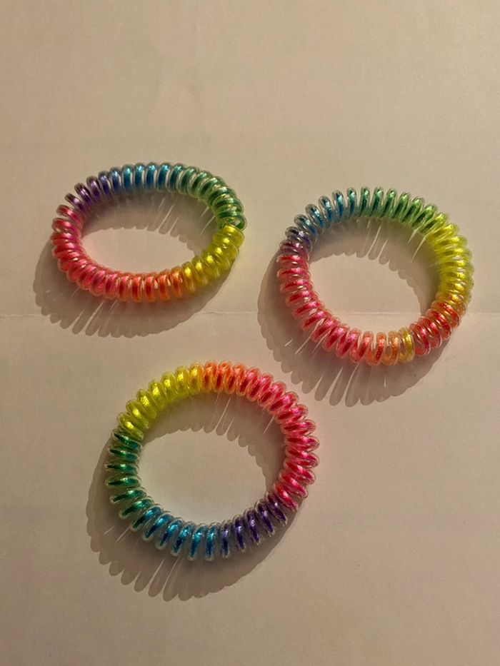 Lot de 3 bracelets extensibles Vert jaune bleu violet rose