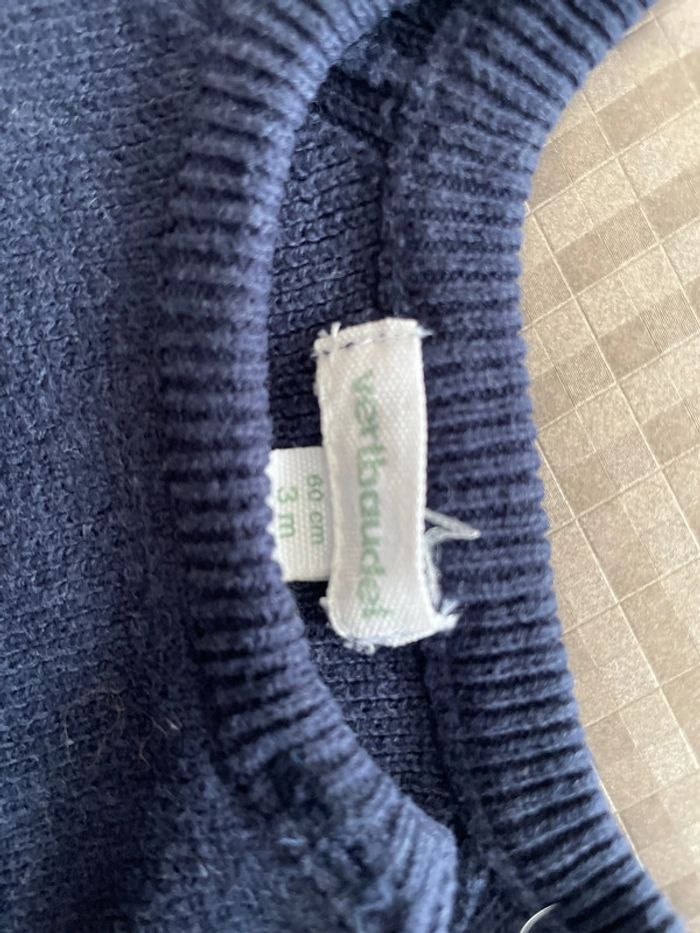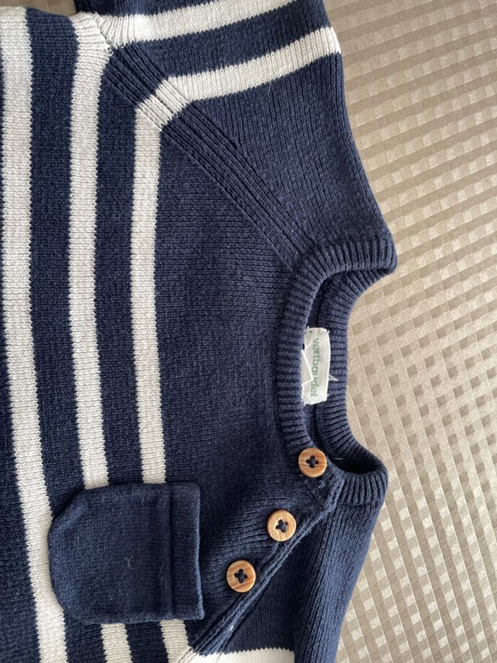 Pull rayé bleu marine / blanc Taille 3 mois (60cm) Marque vertbaudet Réduction lot activée #magnounours_enfantgarçon3mois