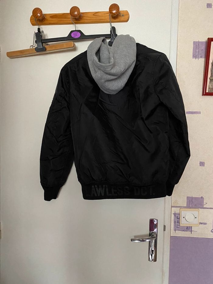 Blouson à capuche Marque Liberto 12 ans 2 poches à pressions sur le dessus 1 poche à fermeture sur un bras 100% polyamide