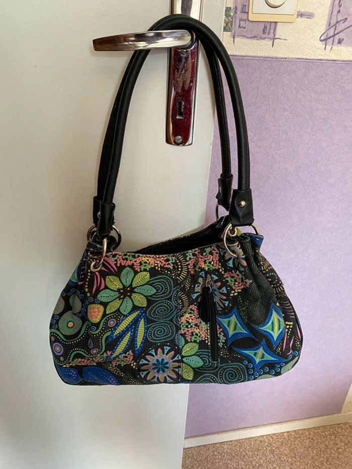 Sac à main en toile Avec motifs 1 poche sur le dessus 2 compartiments a l intérieur 2 poches à l intérieur Utilisé 1 seul fois