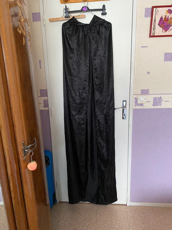 Déguisement Halloween Cape noir Taille L Avec une paire de gants noir et blanc Servi seulement 1 seule fois